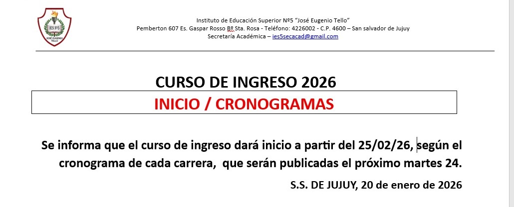 CRONOGRAMA DE INGRESO 2026