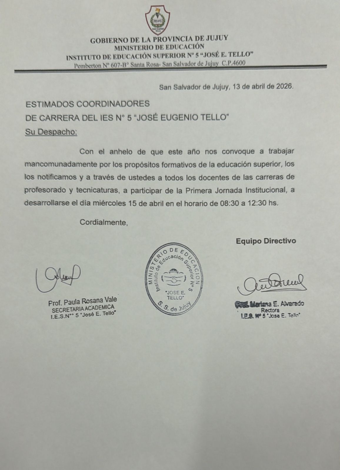 CONVOCATORIA PARA CUBRIR LOS CARGOS DE COORDINADORES DEL DEPARTAMENTO DE INVESTIGACIÓN Y FORMACIÓN INICIAL
