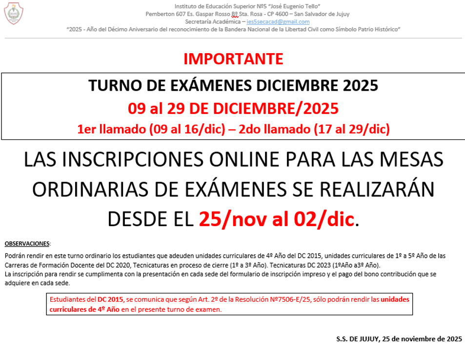 Formularios de Inscripción Examen Ordinario Diciembre/25